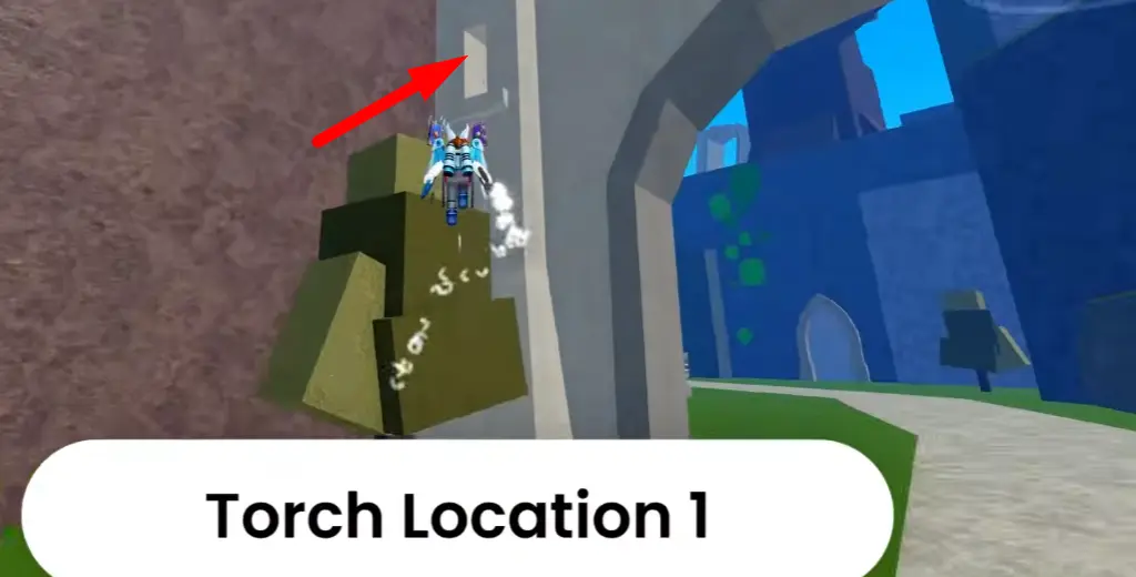 Torch #1: Located inside one of the arches on the main path near the bridge.