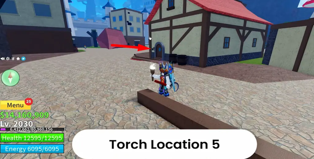 Torch #5: Inside a small circular house near the entrance to the Longma boss arena.