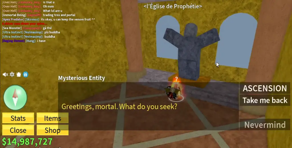Саме тут відбувається магія. NPC запропонує вам пробудити одну зі здібностей вашого поточного фрукта в обмін на Фрагменти (Fragments).